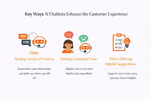 We’ve all seen claims of “personalized support,” but in practice, it often felt like the same generic script with your name plugged in. New AI chatbots break that pattern. They learn from previous interactions, understand preferences, and adapt their tone based on the customer’s emotional cues.