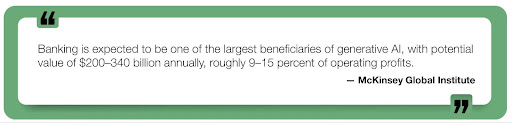 GenAI tools are driving document drafting, regulatory interpretation, and customer engagement—unlocking $200–340 billion in annual value, according to McKinsey.