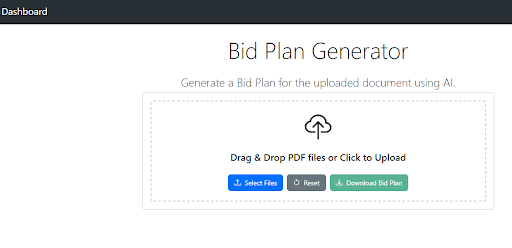 Create a Bid Plan by uploading any PDF file on the Bid Plan Generator. The Bid Plan module assists in creating a strategic plan for responding to an RFP. It likely includes timelines, responsibilities, and key milestones, ensuring that all stakeholders are aligned and the submission is timely.