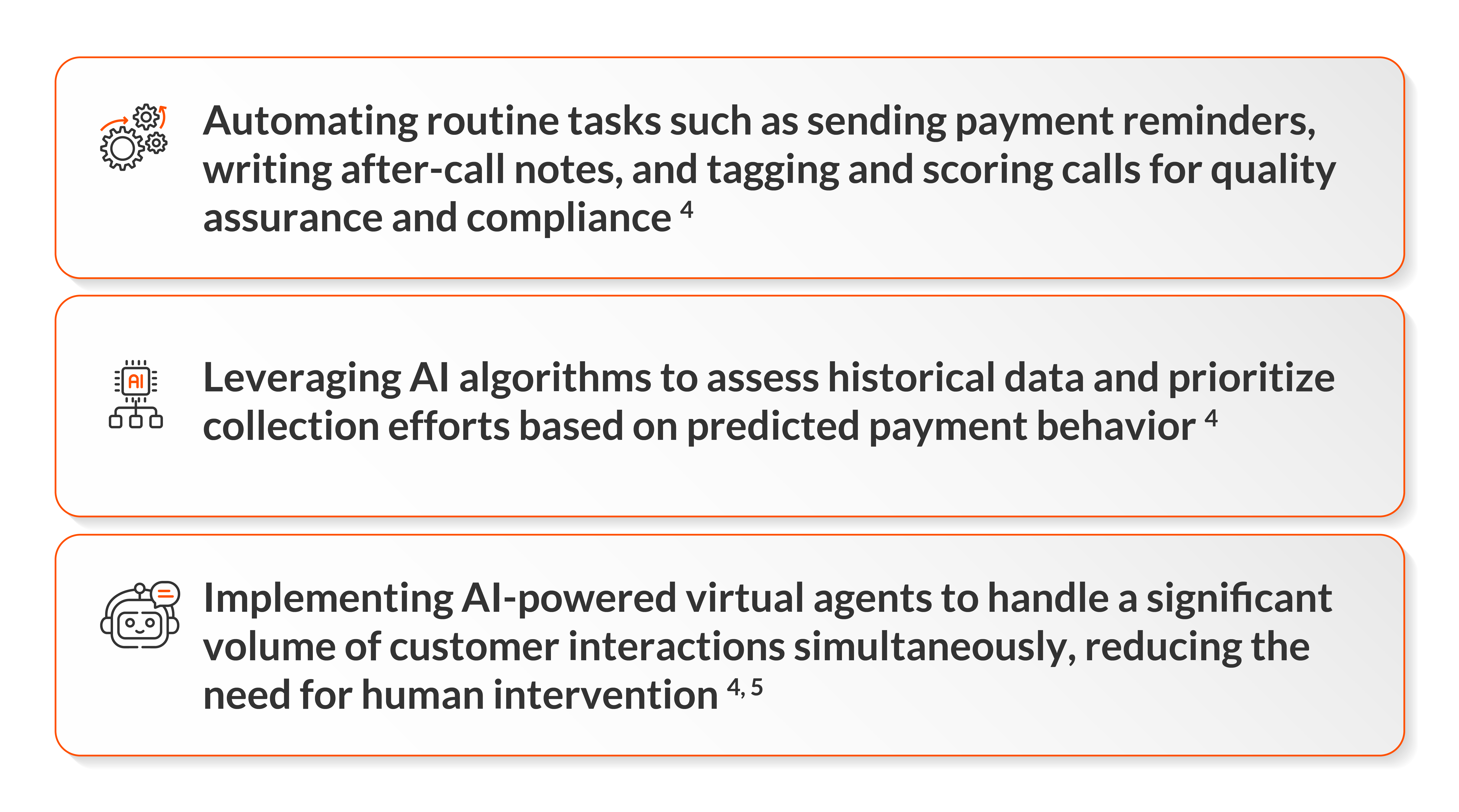 • Automating routine tasks such as payment reminders and follow-ups to ensure timely communication and free up resources for high-touch interactions 1, 4