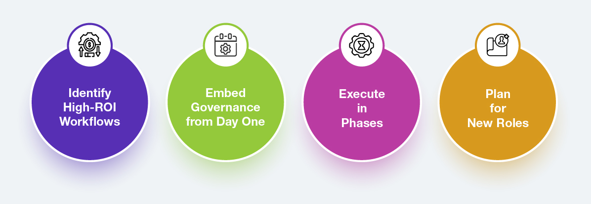 Define Your KPIs Early: Track time-to-task-completion reduction, cost per process, error rates compared to manual processes, revenue impact, customer satisfaction, and SLA improvements.